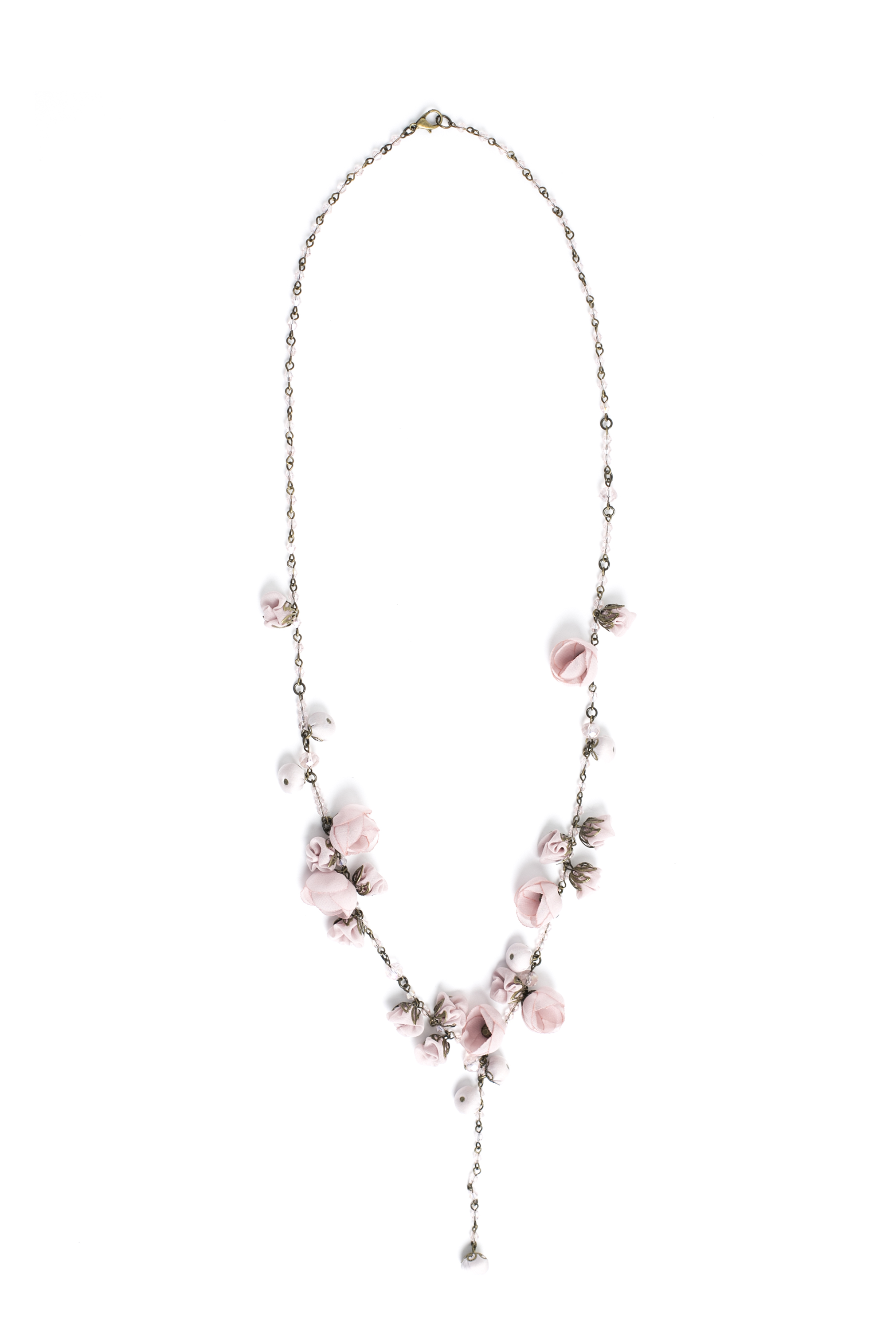 Natural Japanese silk hand-crafted flowers, mountain crystals\glass beads, antique bronze chain, non-allergic.