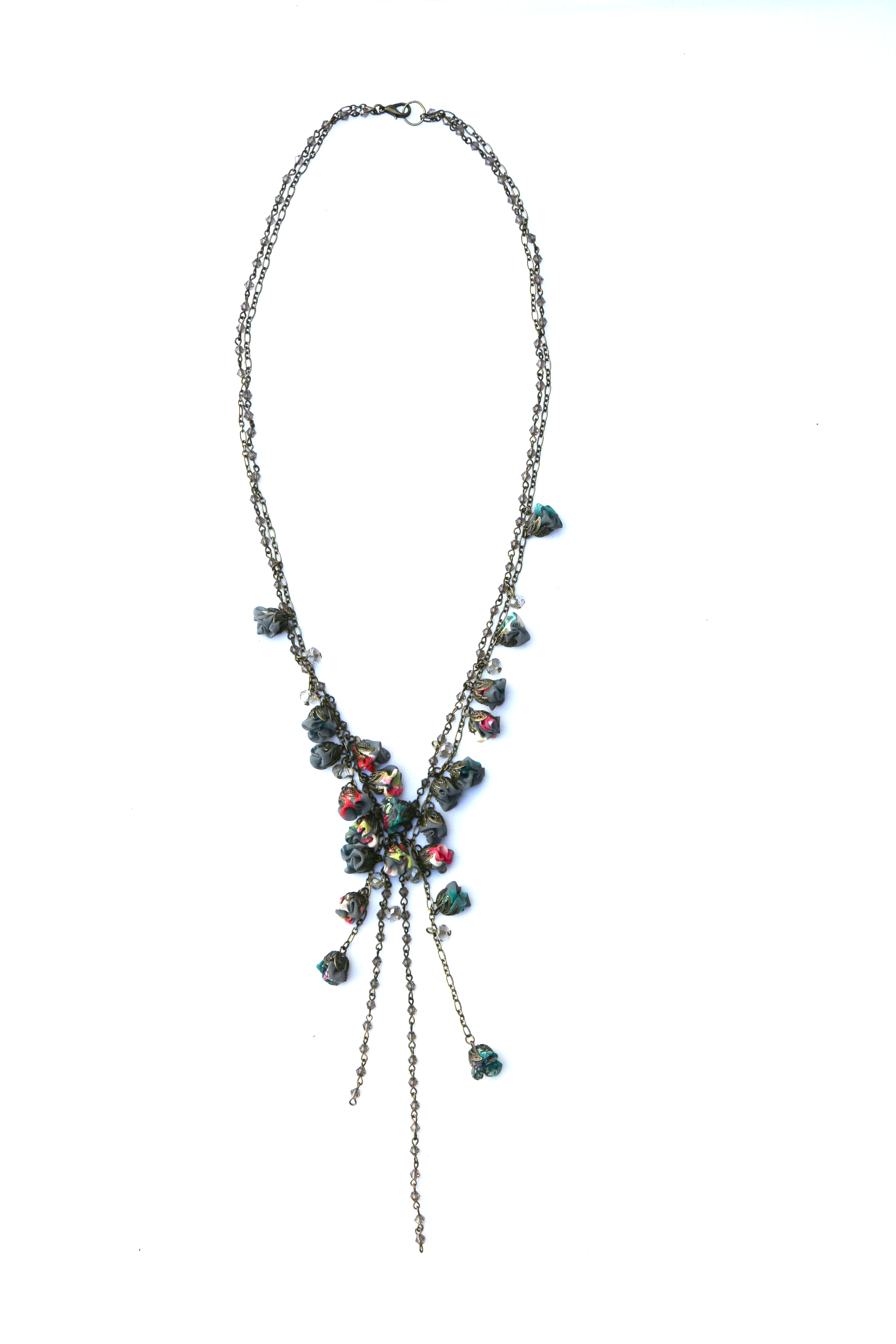 100% hand-crafted, contemporary, lengthy and chic silk flowered necklace