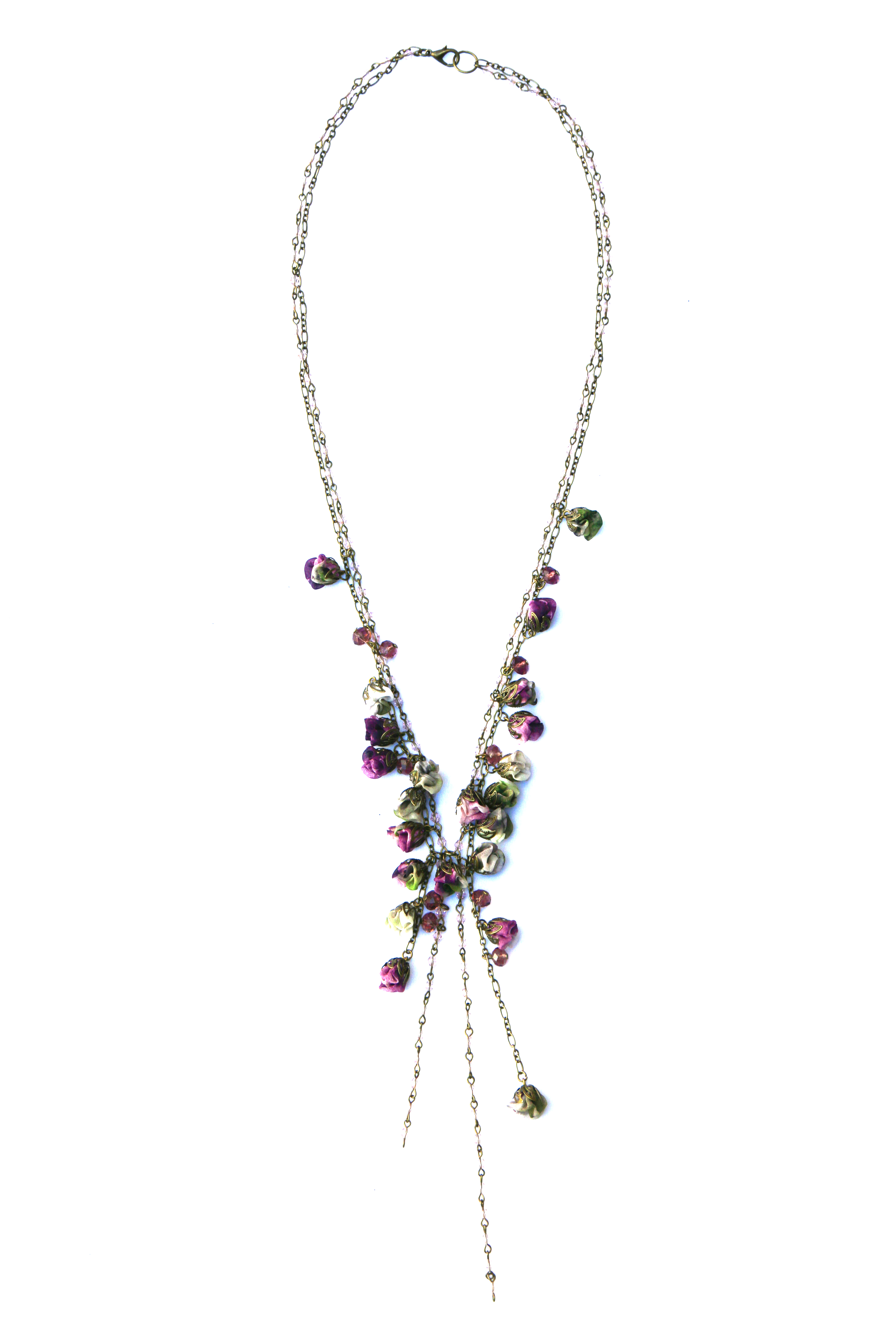 100% hand-crafted, contemporary, lengthy and chic silk flowered necklace