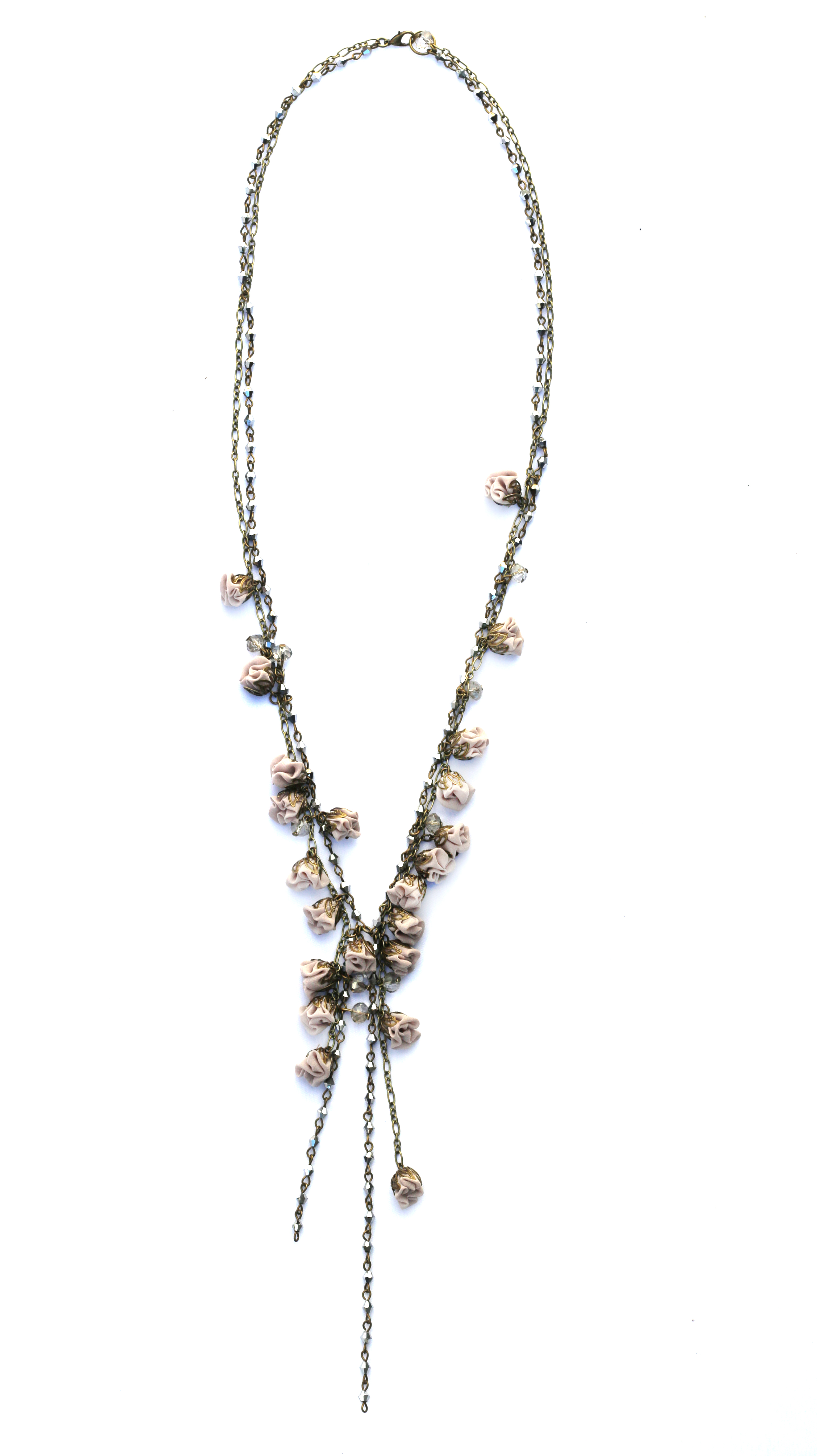 100% hand-crafted, contemporary, lengthy and chic silk flowered necklace