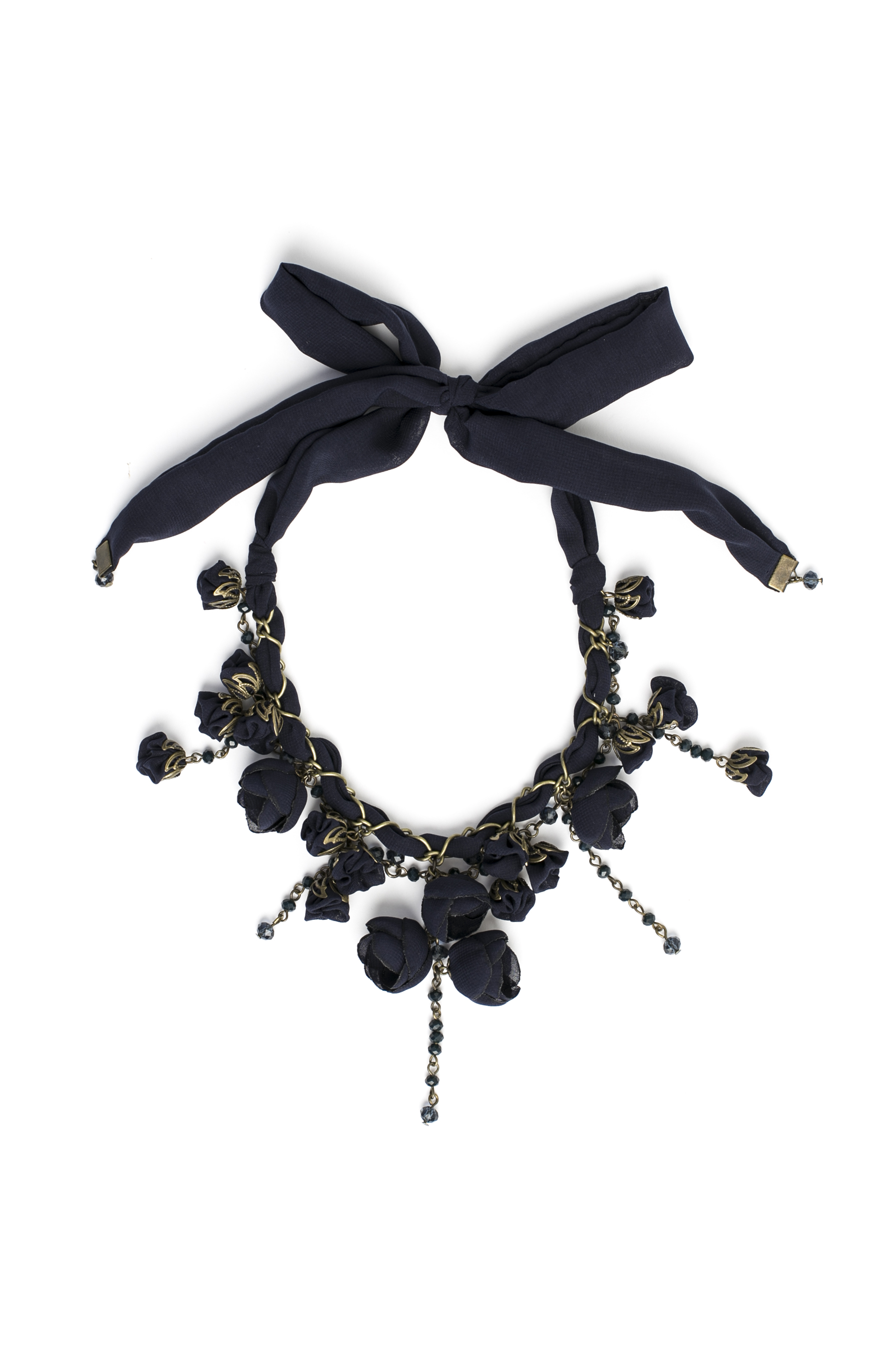 The necklace is created with 100% hand-crafted and natural textile flowers, all being Signature details of "Ana Popova" collections.