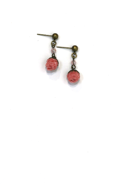 organza hand-crafted vintage style roses, mountain crystals, antique bronze chain, non-allergic