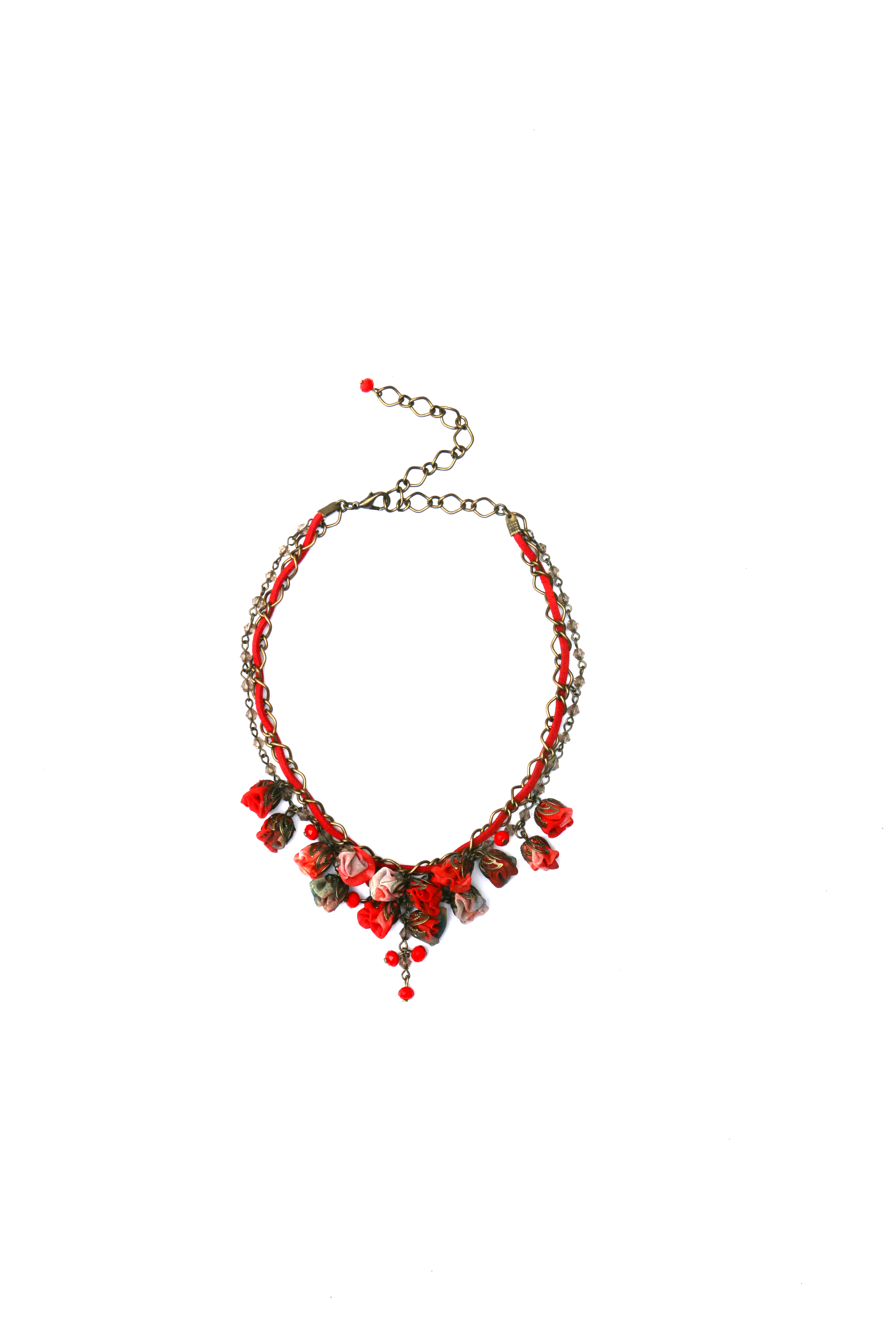 The necklace is created with 100% hand-crafted and natural textile flowers, all being Signature details of "Ana Popova" collections.