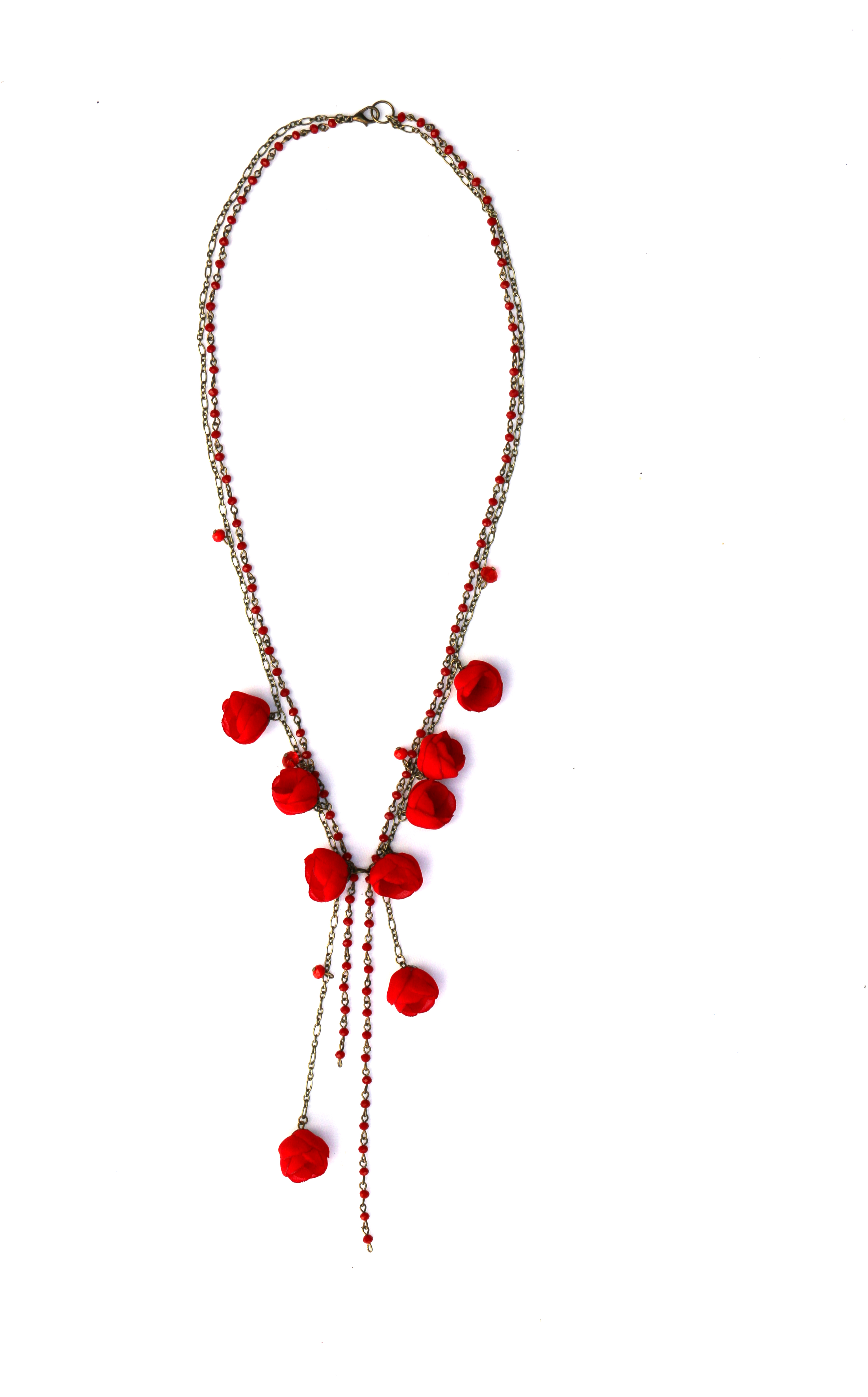 100% hand-crafted, pendant and romantic silk flowered necklace