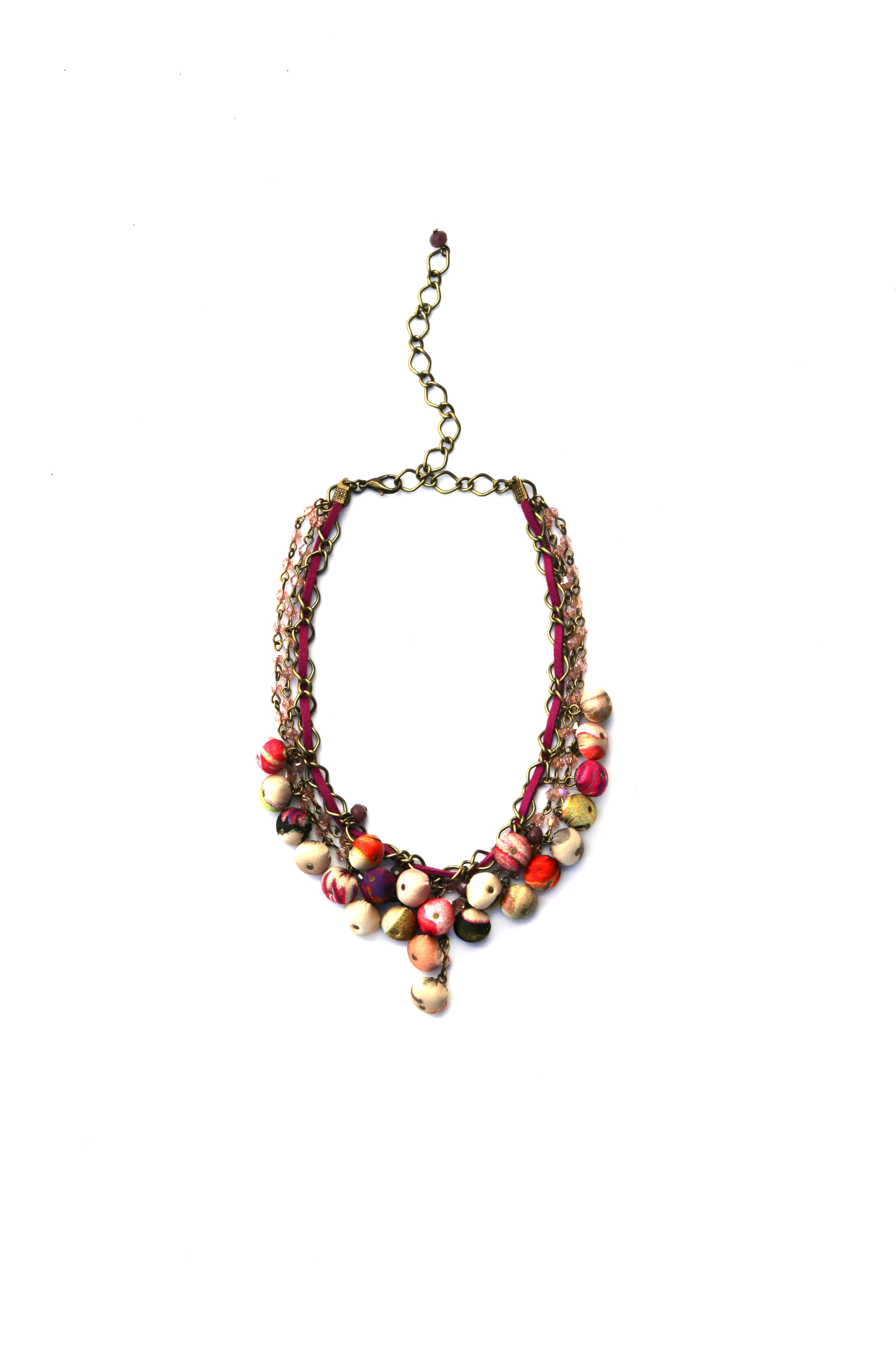 The necklace is created with 100% hand-crafted and natural textile beads, all being Signature details of "Ana Popova" collections.