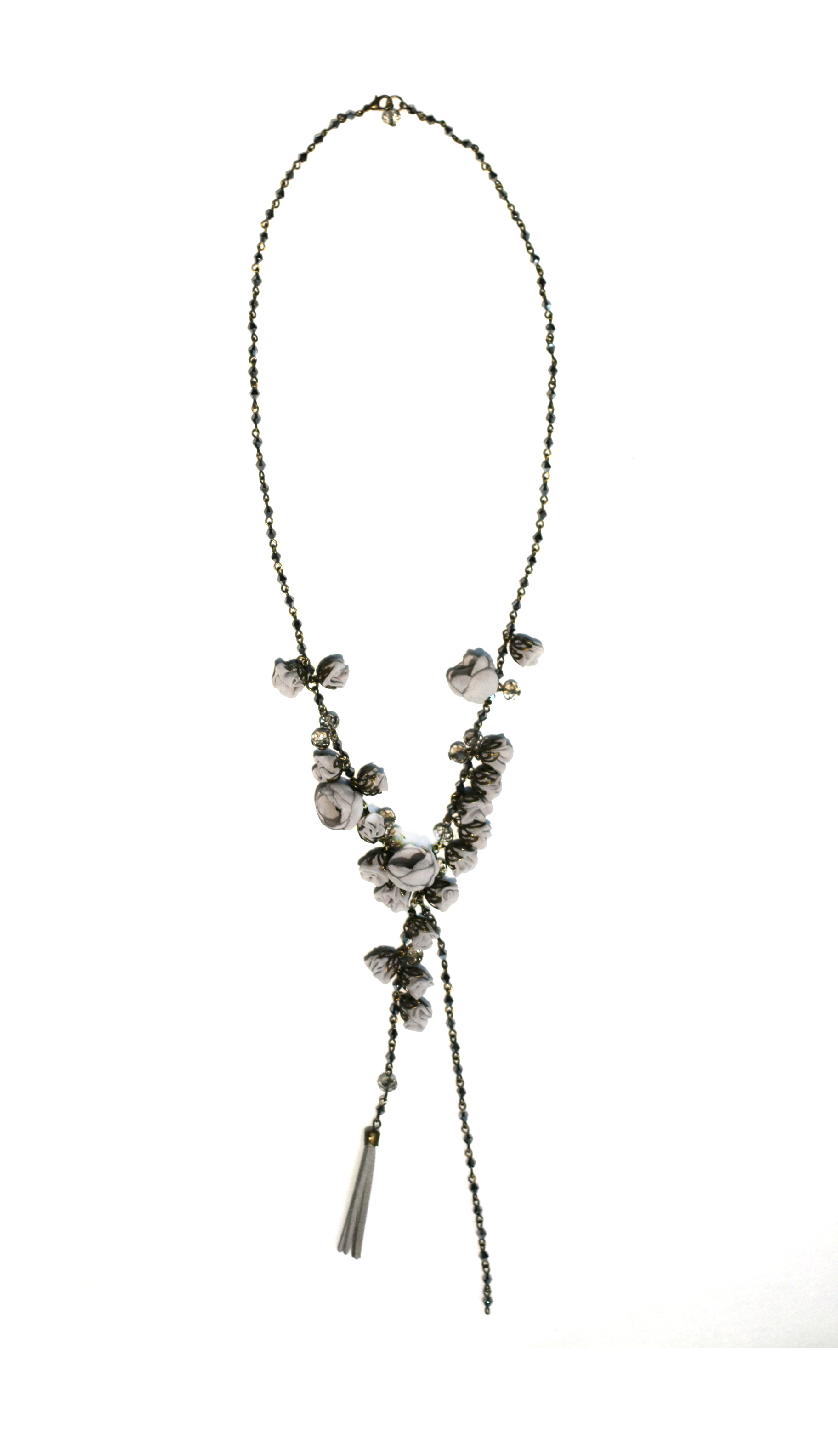 100% hand-crafted, long chain, contemporary and chic silk flowered necklace