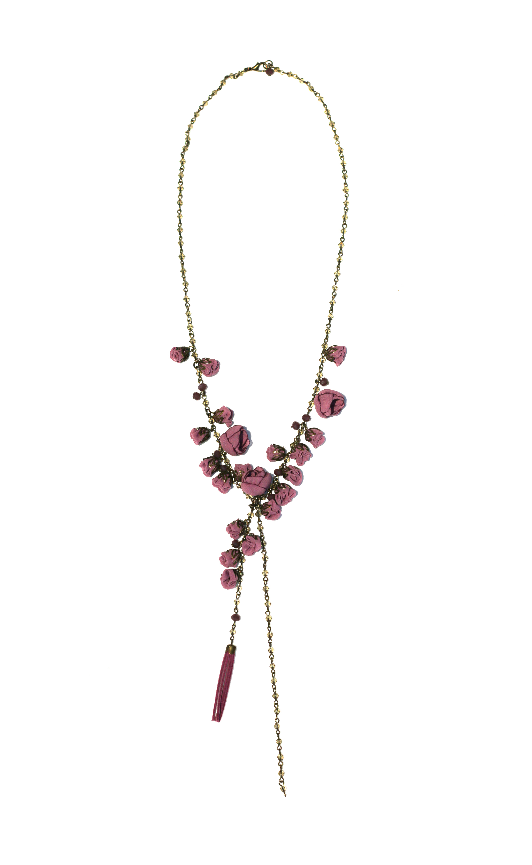 100% hand-crafted, long chain, contemporary and chic silk flowered necklace