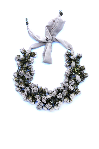 The necklace is created with 100% hand-crafted and natural textile flowers, all being Signature details of ""Ana Popova"" collections. "