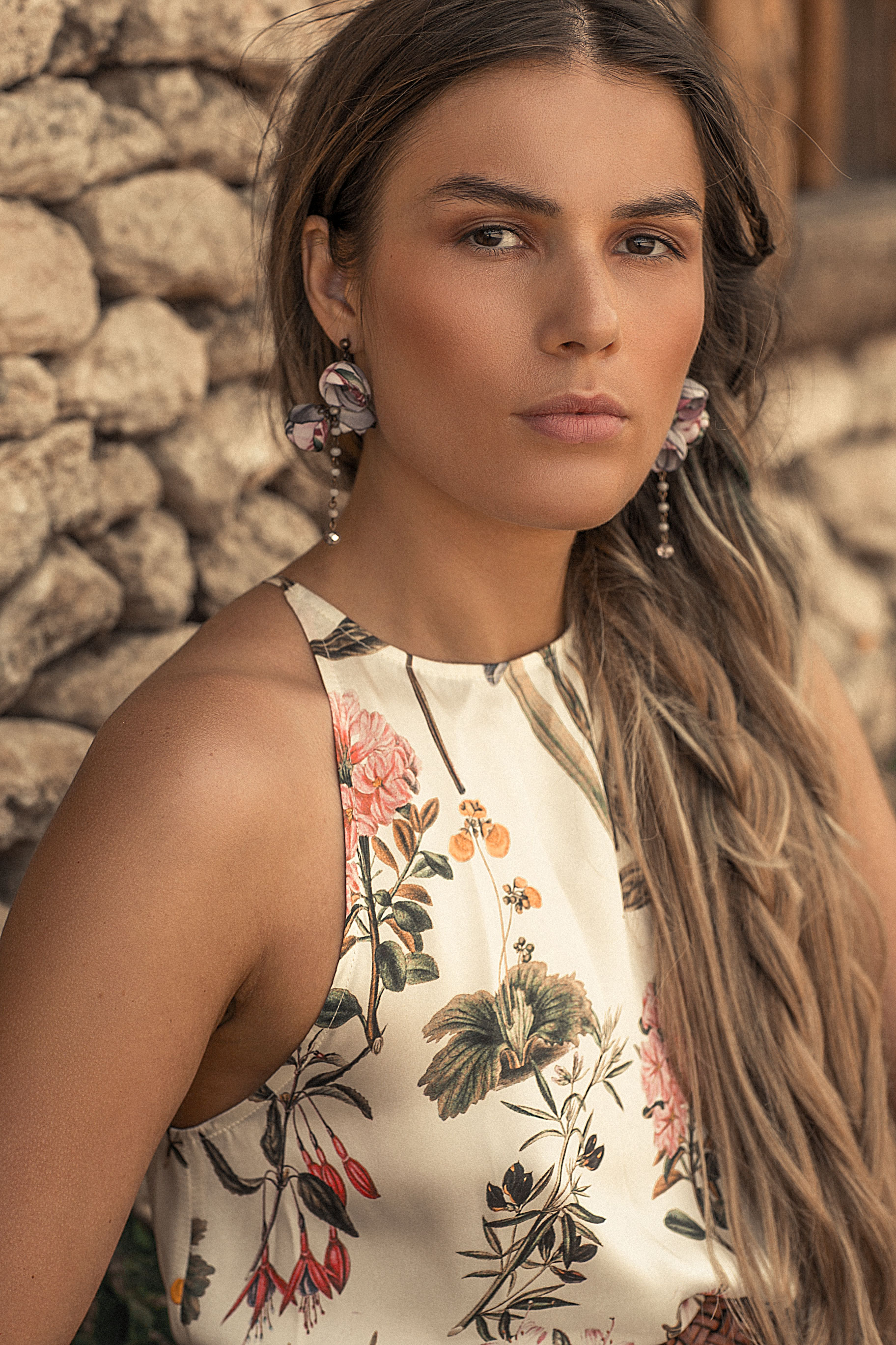 The earrings are created with 100% hand-crafted and natural textile flowers, all being Signature details of "Ana Popova" collections.