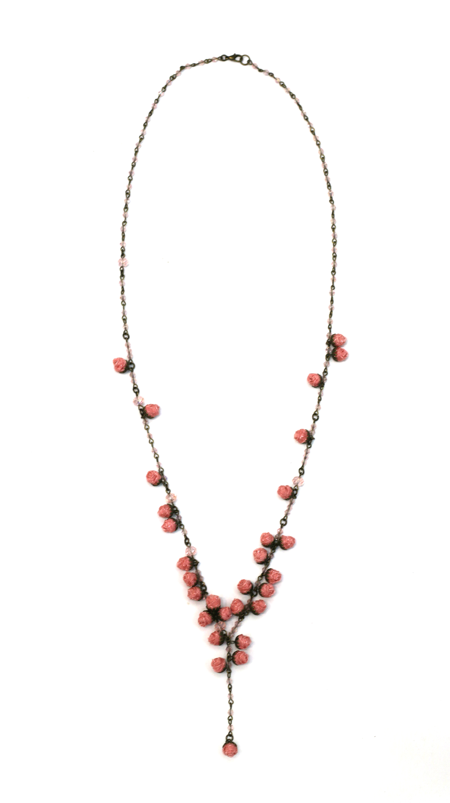 100% hand-crafted, classy, long chain, flexible, delicate organza vintage style roses necklace