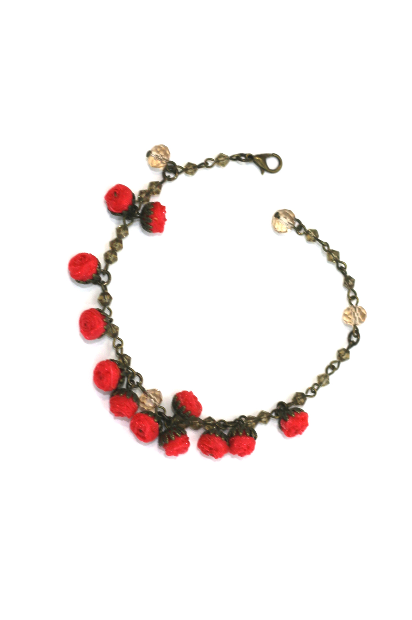 100% hand-crafted, casual, delicate organza vintage style roses bracelet