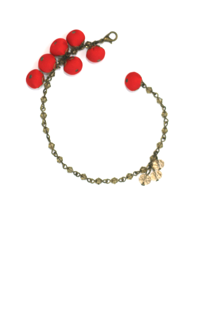 Bile textile executate manual din mătase naturală, cristale naturale de munte, lanț din bronz antichizat, detalii metalice hipoalergenice.