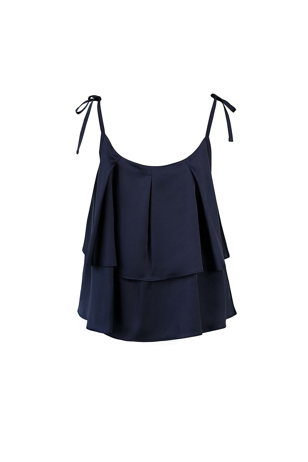 Top cu o croială largă, trapezată, completat de un fald fin și bretele ajustabile.