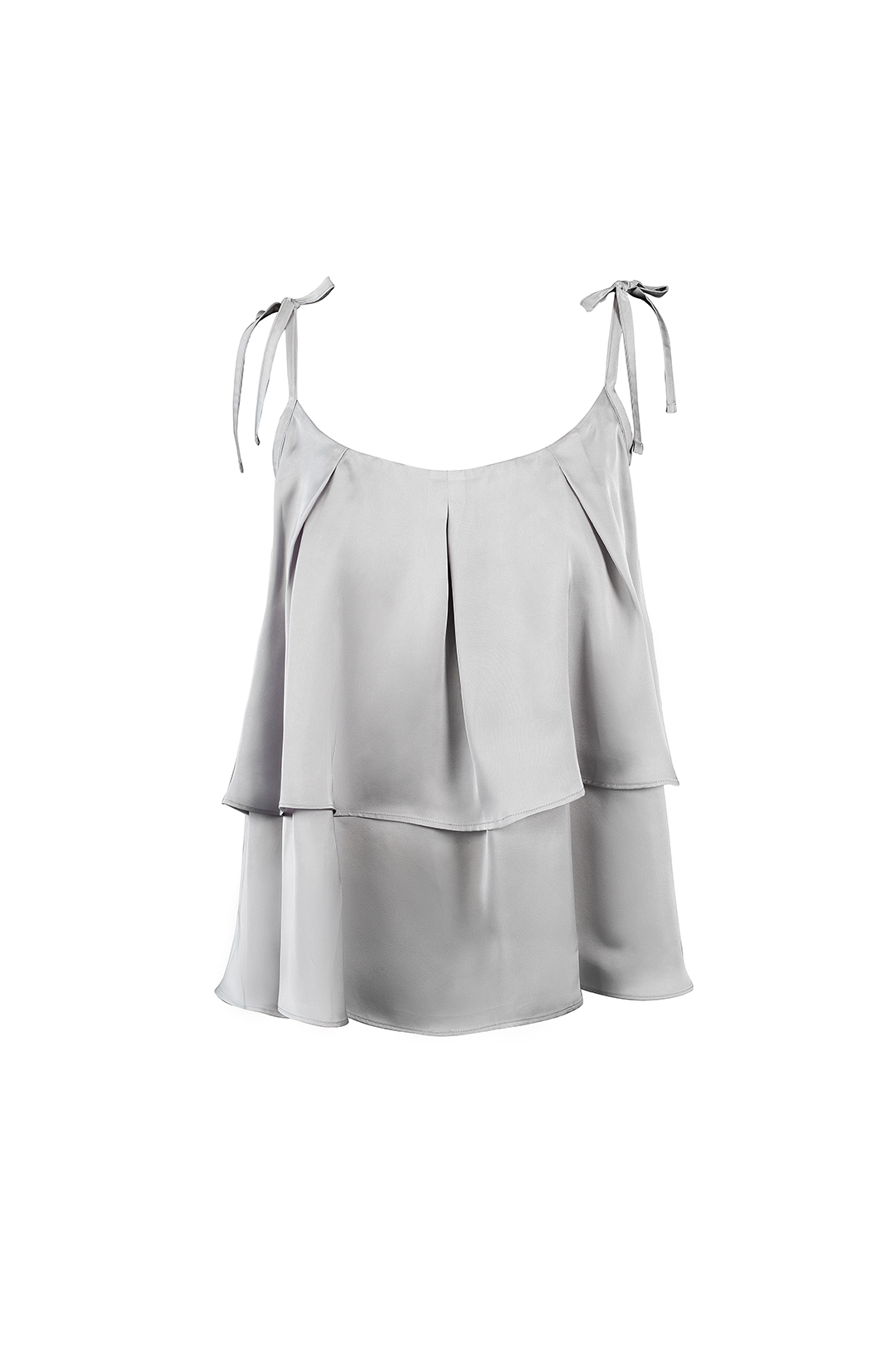 Top cu o croială largă, trapezată, completat de un fald fin și bretele ajustabile.