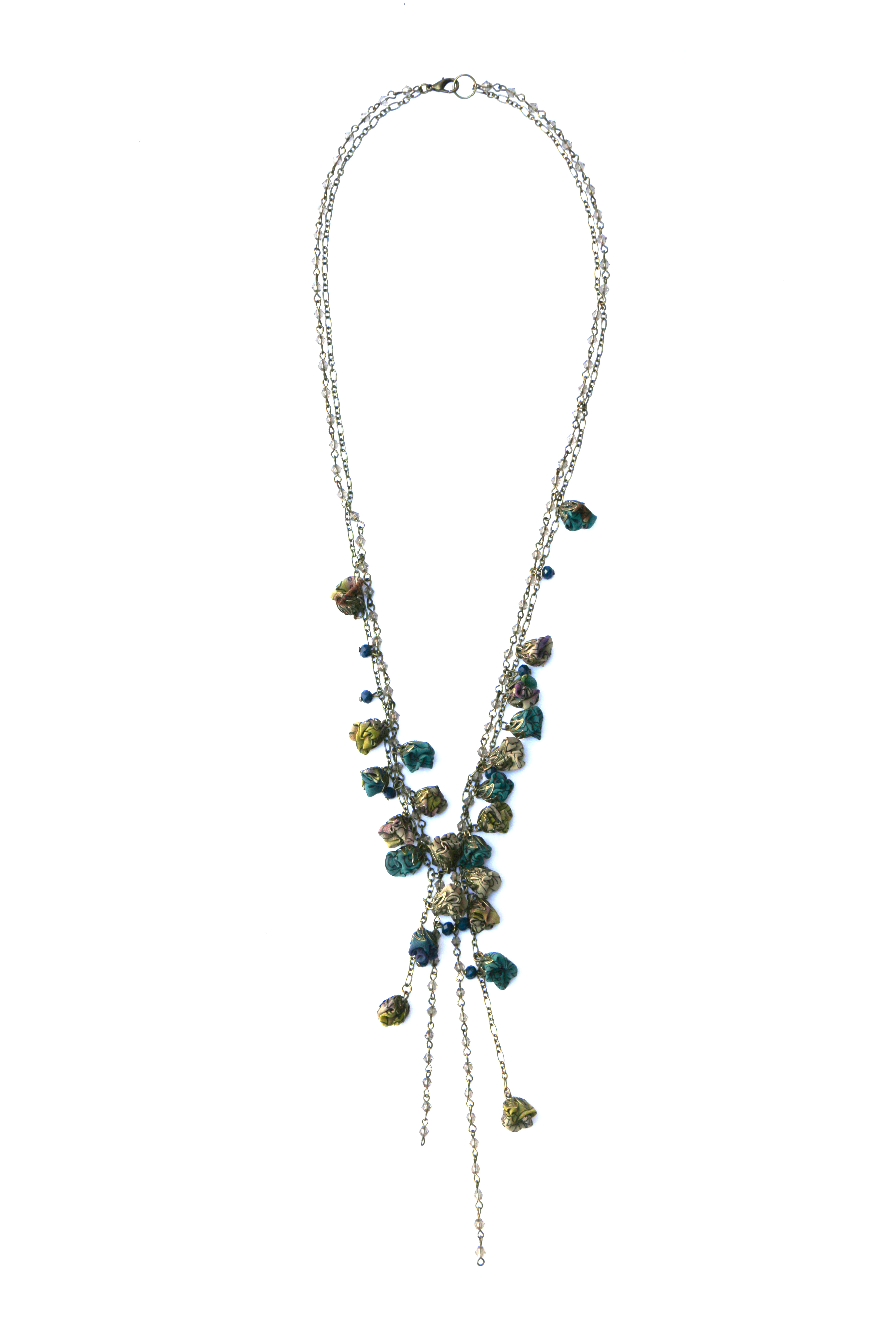 100% hand-crafted, contemporary, lengthy and chic silk flowered necklace
