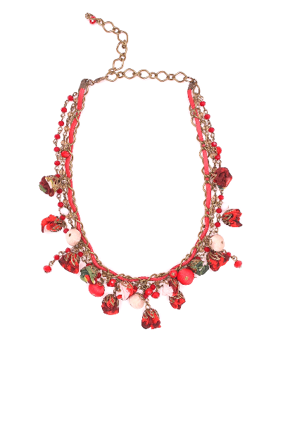 O combinație fină din elemente florale și bile textile, într-un colier care poartă semnătura colecțiilor unice „Ana Popova”. Toate detaliile sunt executate manual sută la sută.