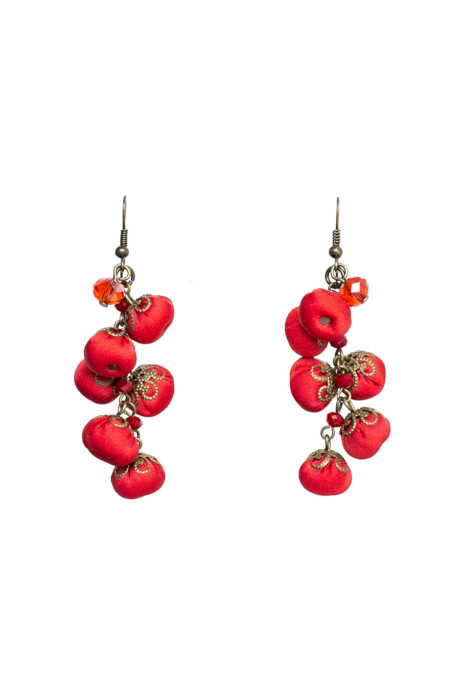 Cercei creați în stil clasic, cu bile textile din mătase, executați manual sută la sută.