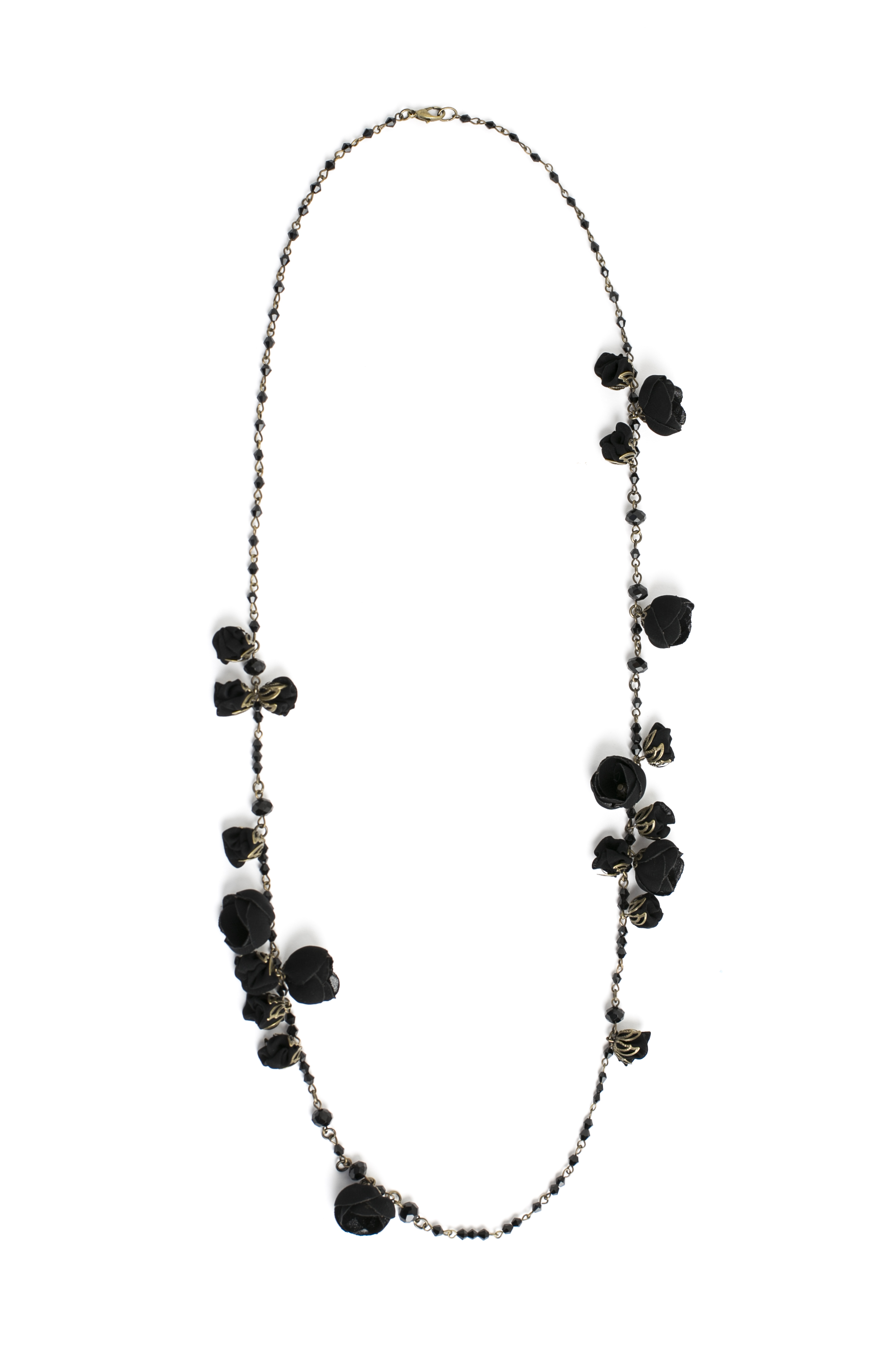 Colier cu lanț lung, creat dintr-un mix de elemente florale, cu note fine de eleganță și de romantism. Executat manual sută la sută.