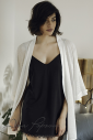 Rochie de noapte, cu lungime mini și bretele finisate cu o panglică fină.