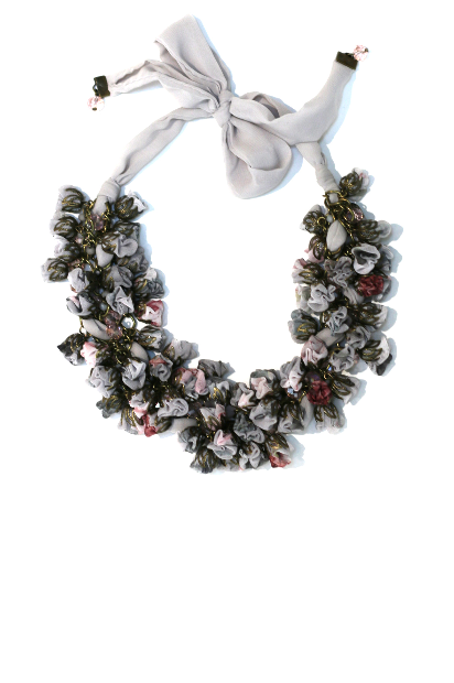 Colier masiv la baza gîtului, romantic și sofisticat, cu elemente florale masive, sută la sută executat manual.