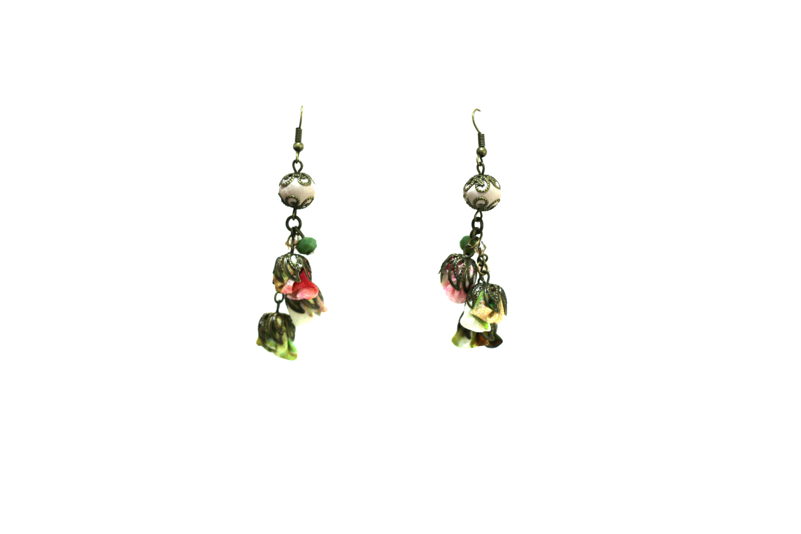 Cercei creați dintr-un mix de elemene florale și bile textile din mătase, cu note fine de eleganță și de romantism. Executați manual sută la sută.